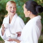 Closeup portrait of a beautiful young woman enjoying a spa day and daydreaming A young woman lying in a health spa Two young women having coffee in their bathrobes at the spa Shot of a woman opening a gift at home Shot of an assortment of skincare products on a tabletop A beautiful young woman relaxing in a spa Mixed race masseuse giving relaxing massage to female client at spa Focus on hands using massage tools to massage a man’s back